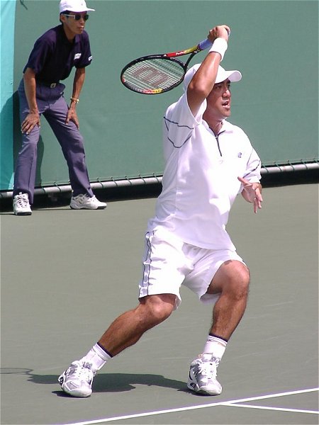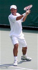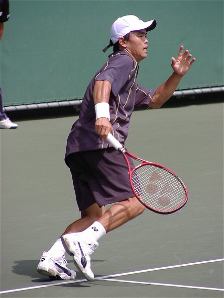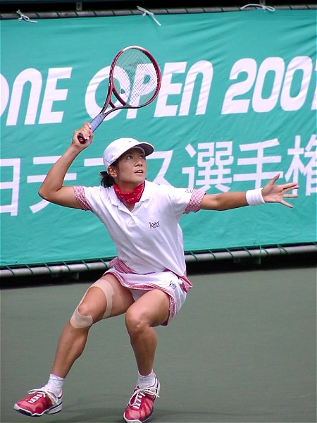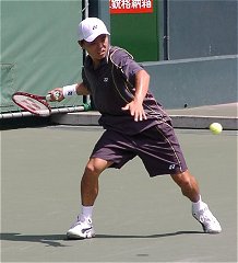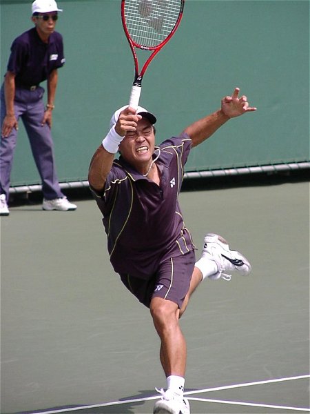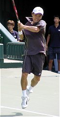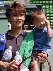 本村に負ける要素がどれほどあるだろうか。普通に戦えばまず負けることはない。第1シードの本村と第3シードの高田にはそれほどの隔たりがあるように思えた。本村に唯一不安があるとすれば過度に期待された時、必要以上に緊張する癖だ。デ杯しかり、昨年の全日本決勝しかり。 しかし今日はそのような不安は微塵も見せなかった。昨日の佐藤と同じく高田も十分な体勢でネットを取らせてもらえない。ストローク戦になると本村は高田のバックを執拗に攻めた。高田は必死でスライスで凌ぐが、本村には通用しない。次から次へ、まるで練習のようにストロークエースを積み重ねていった。 |