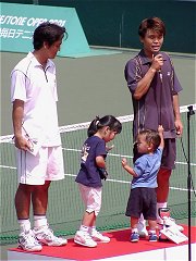 朝10時より、男子シングルス決勝、女子シングルス決勝、男子ダブルス決勝の順で行われた。観客は昨年にも増して少ない。男子シングルスが始まった時、広い会場になんとたったの23人だった。主催者はとっくの昔に観客動員をあきらめてしまったのだろうか。せっかく大新聞社なのにもったいない話だ。