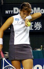 1年前の全日本準決勝、藤原里華は井上青香を相手にセンターコートで怯えていた。まともには打ち合わず、ゆるいボールとスライスで応戦した。打ち合いを避けた結果、自分の持ち味さえも捨ててしまった。結果は無残で何の収穫も得られないものであった。井上とは直前の上海の大会で対戦し完敗。まるで卓球の前陣速攻のような速いテンポに翻弄され、すっかり苦手意識を植え付けられてしまった。この時はまだ自分の戦うべき相手が誰か気づいていなかった。 今年に入って藤原は急成長した。ウィンブルドンの前哨戦であるサービトンのチャレンジャー大会で浅越しのぶを始め100位以内の選手を連破し、プロ入り初優勝した。ランキングはあれよあれよという間に上昇し、グランドスラム本選ストレートイン寸前のところまで到達した。自信は確固たるものとなり、次なる飛躍に向けほとばしる闘志を燃やしていた。ただ藤原にはグランドスラムの前に全日本でやらなければならないことがあった。 1年後の全日本準決勝、センターコートのネットを挟んで再び井上青香が立ちはだかっていた。しかし今年の藤原は違っていた。これから始まるのは井上との戦いではなく、自分自身との戦いであることを十分すぎるほど理解していた。藤原は自らの決別の儀式を淡々と進めていった。1セットオールになろうとも、もはや決して逃げることはなく、自らの力を信じて突き進んだ。試合が終わった時、そこには呪縛から解き放たれた新しい藤原がいた。 |